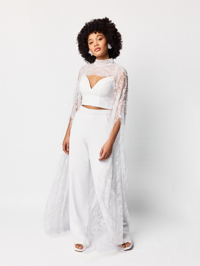 C-75101 - Rijk gedecoreerde tule cape versierd met pailletten, kraaltjes en pareltjes