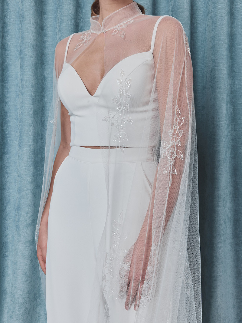 C-75107 - Prachtige, extra lange, cape met opstaand boordje met kraaltjes en pailletjes