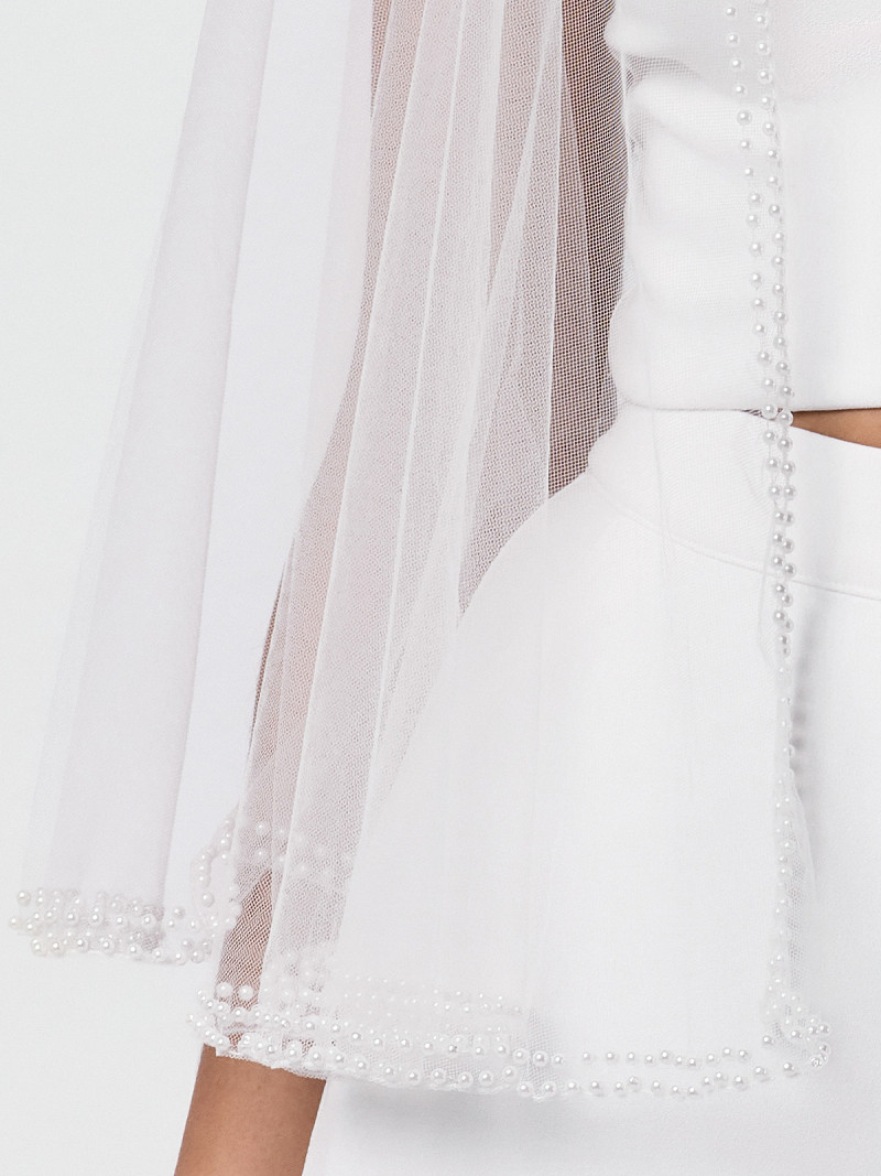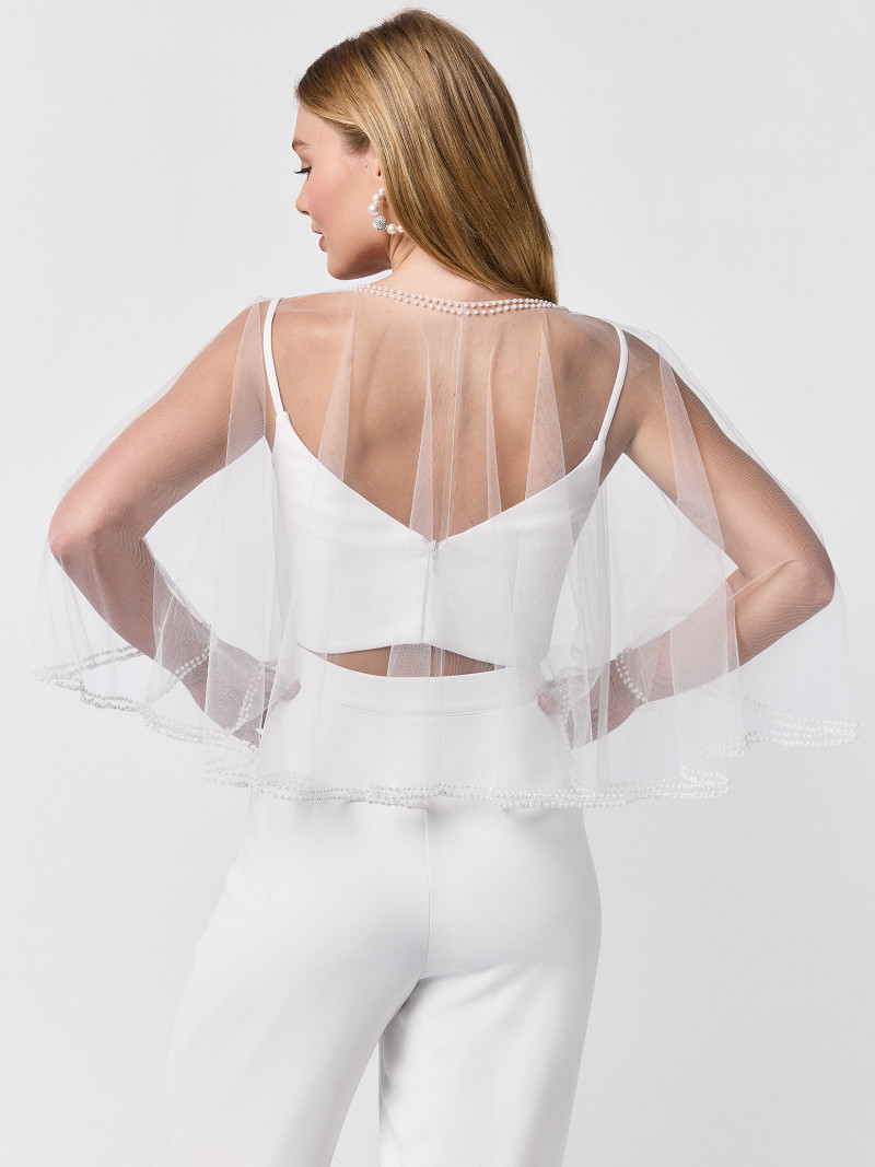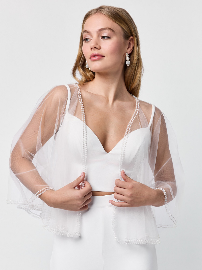 C-75104 - Zwierige cape met 2 rijen pareltjes aan de rand