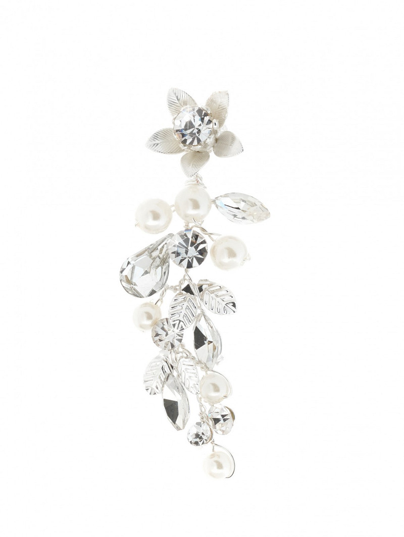- Product: NC-1324 – oorbellen in de vorm van een takje met blaadjes en bloemetjes van pareltjes en strasssteentjes