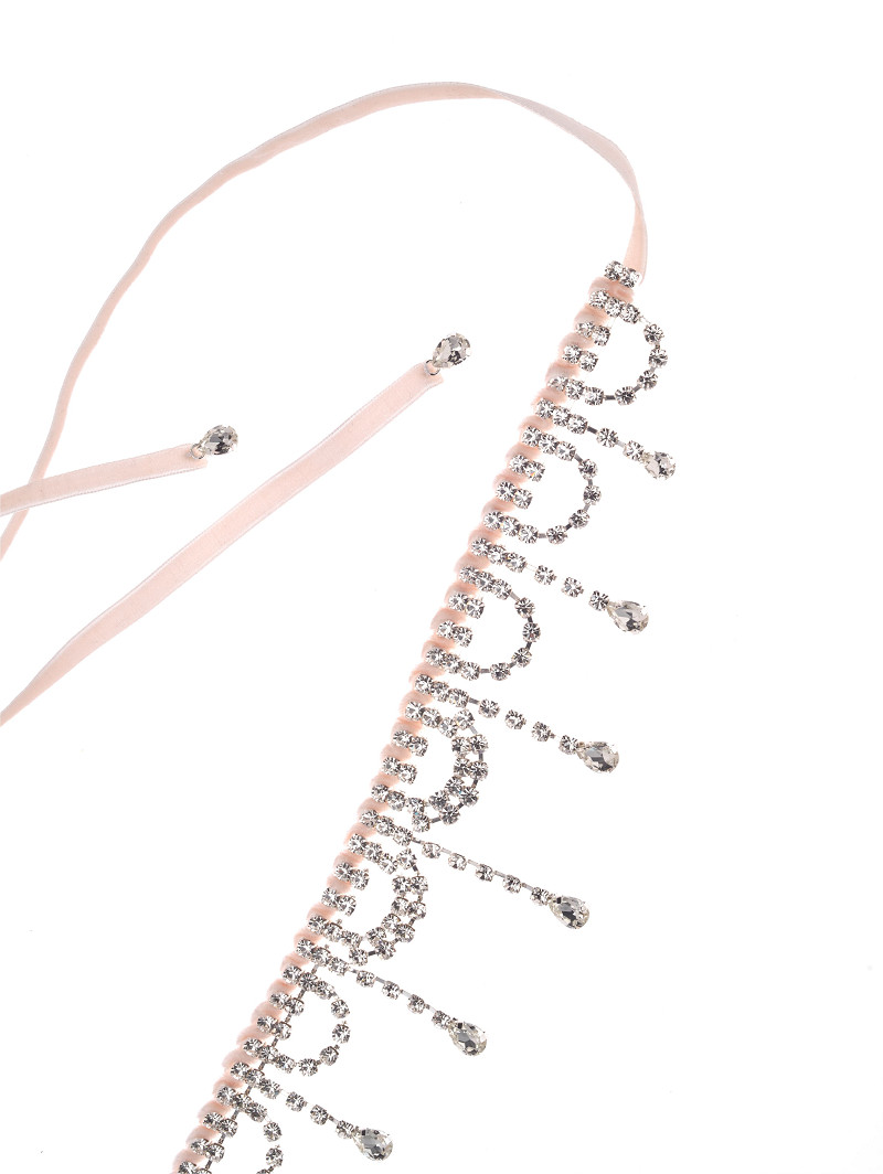 JN-75272 - Collier van strasssteentjes op fluwelen lint in kenmerkende choker-stijl; in zilver/blush