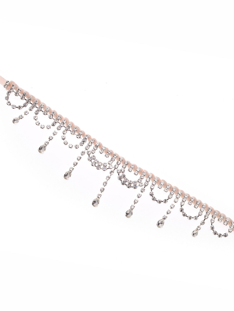 - Zilveren basis met strass op blushkleurig fluwelen lint.