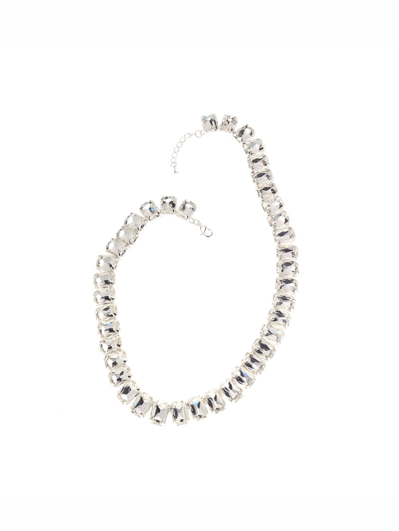 JN-75275 - Deluxe zilverkleurig collier met geschakelde strassstenen
