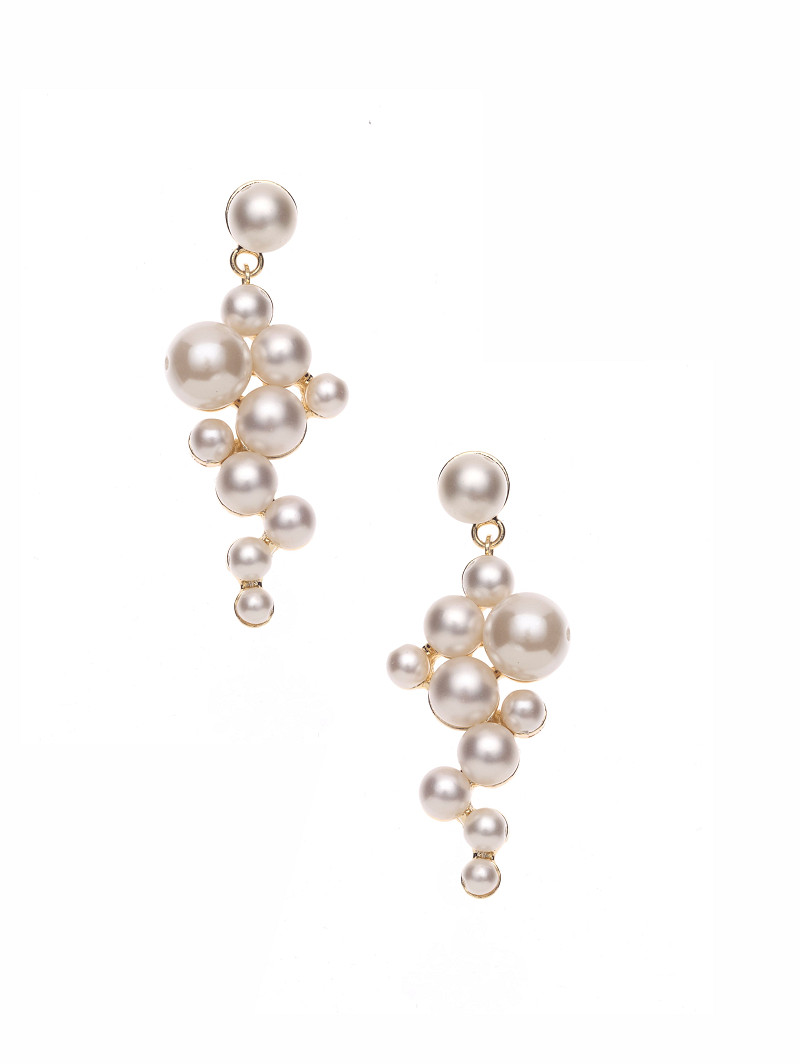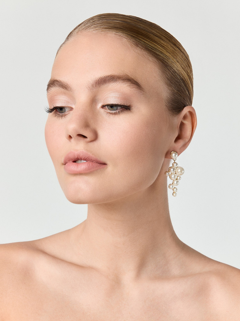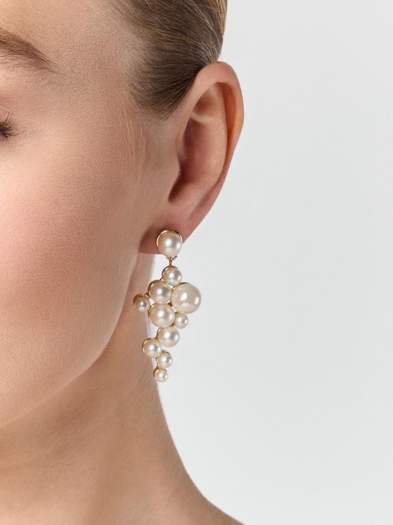 JE-75208 - Oorbellen met een variatie aan matte en glanzende parels in ivoorkleur