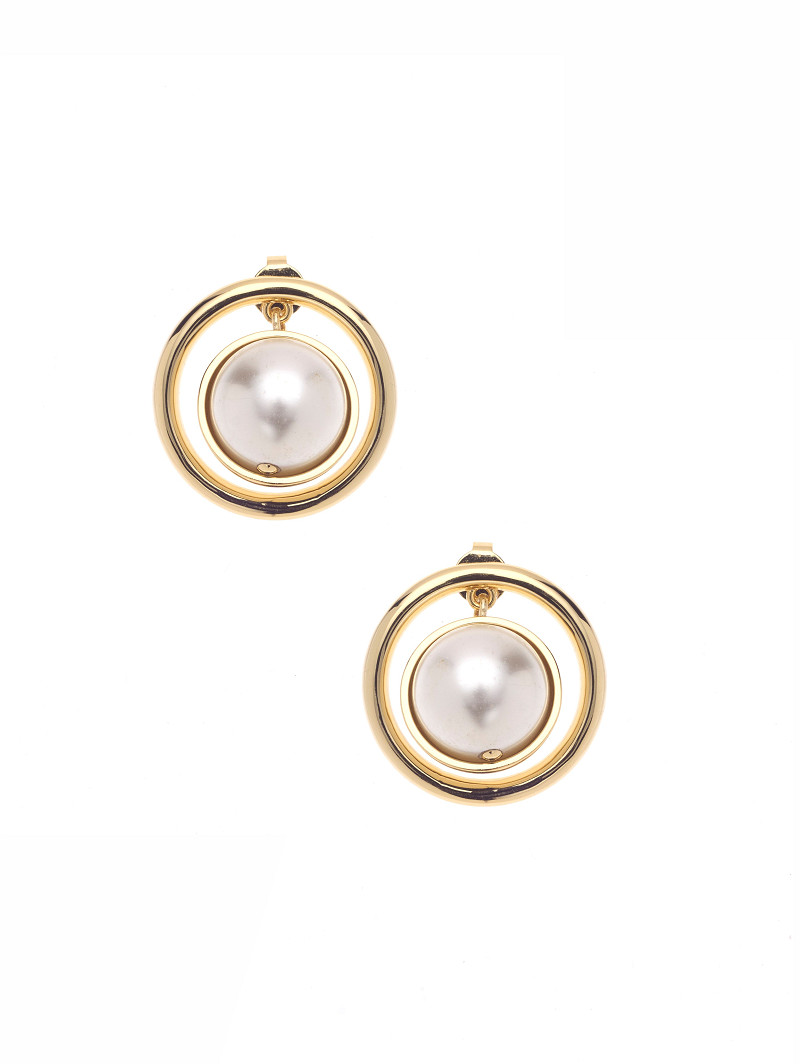 JE-75221 - Stijlvolle gouden oorbellen bestaand uit een ring met daarin verwerkt een parel