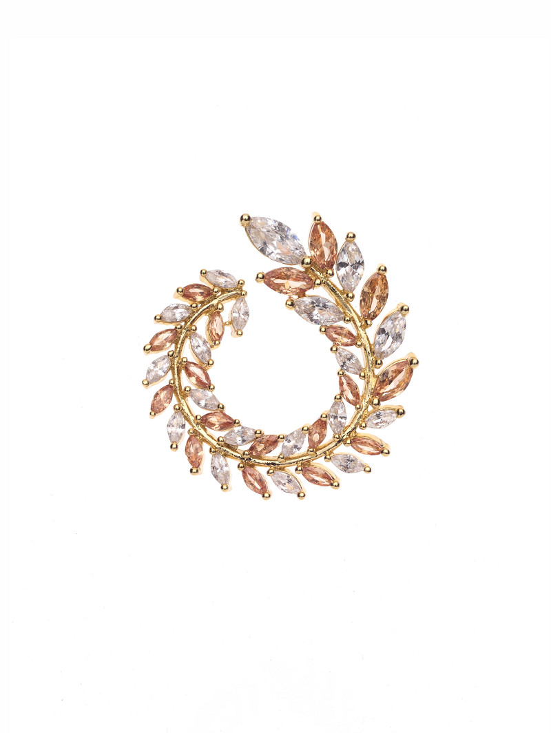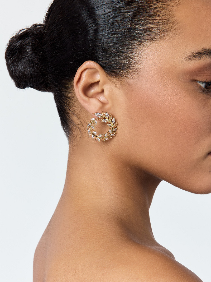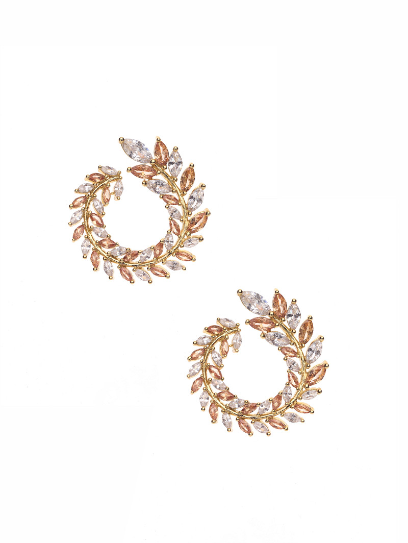 JE-75214 - Fraaie oorbellen in de vorm van lauwerkransjes met witte en champagnekleurige strasssteentjes