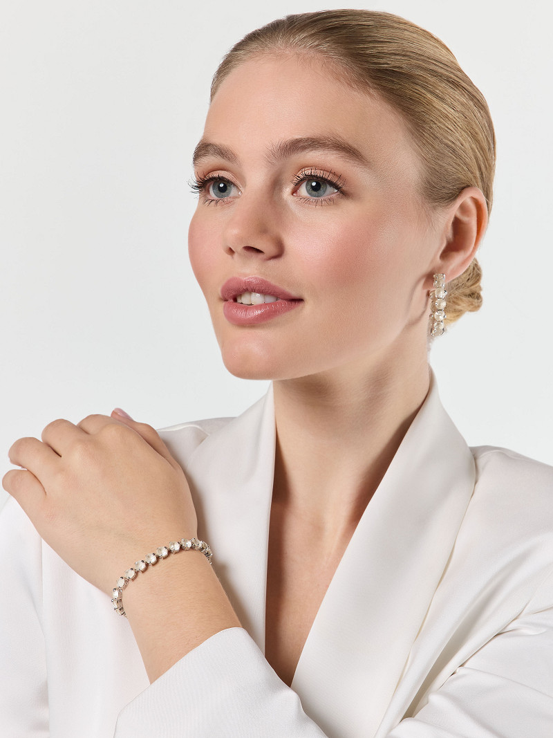 - Bezet met schitterende ivoorkleurige Swarovski steentjes.