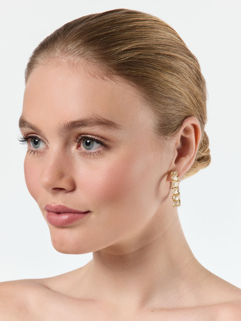 JE-75233 - Trendy gouden oorringen bezet met prachtige ivoorkleurige Swarovski steentjes