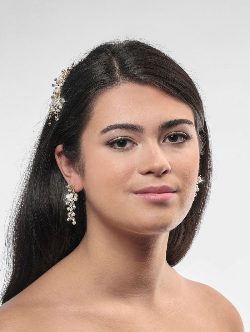 - Product: NC-1324 – oorbellen in de vorm van een takje met blaadjes en bloemetjes van pareltjes en strasssteentjes