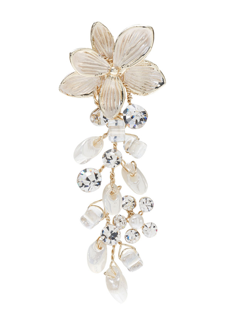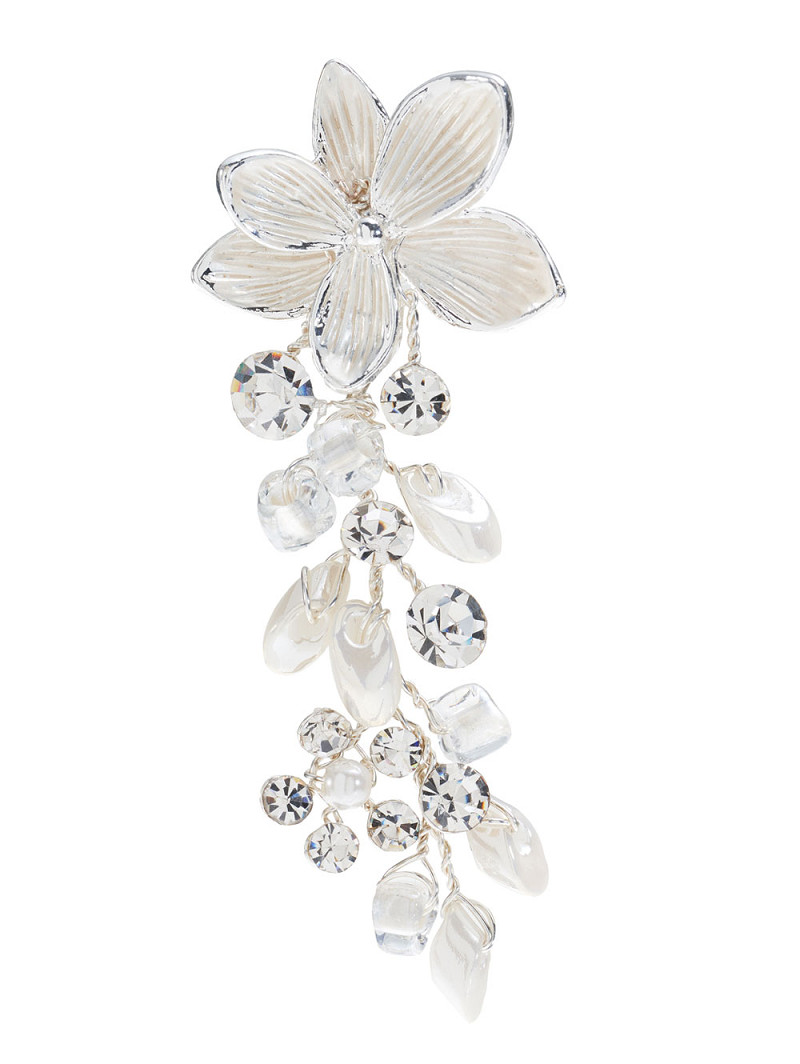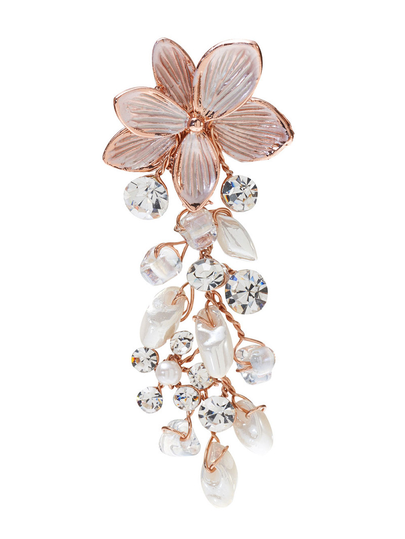 Kenmerken: zilverkleurige of goudkleurige of roségoudkleurige basis, ivoorkleurige of champagnekleurige of rosékleurige bloem, ivoorkleurige zoetwaterpareltjes, strasssteentjes.