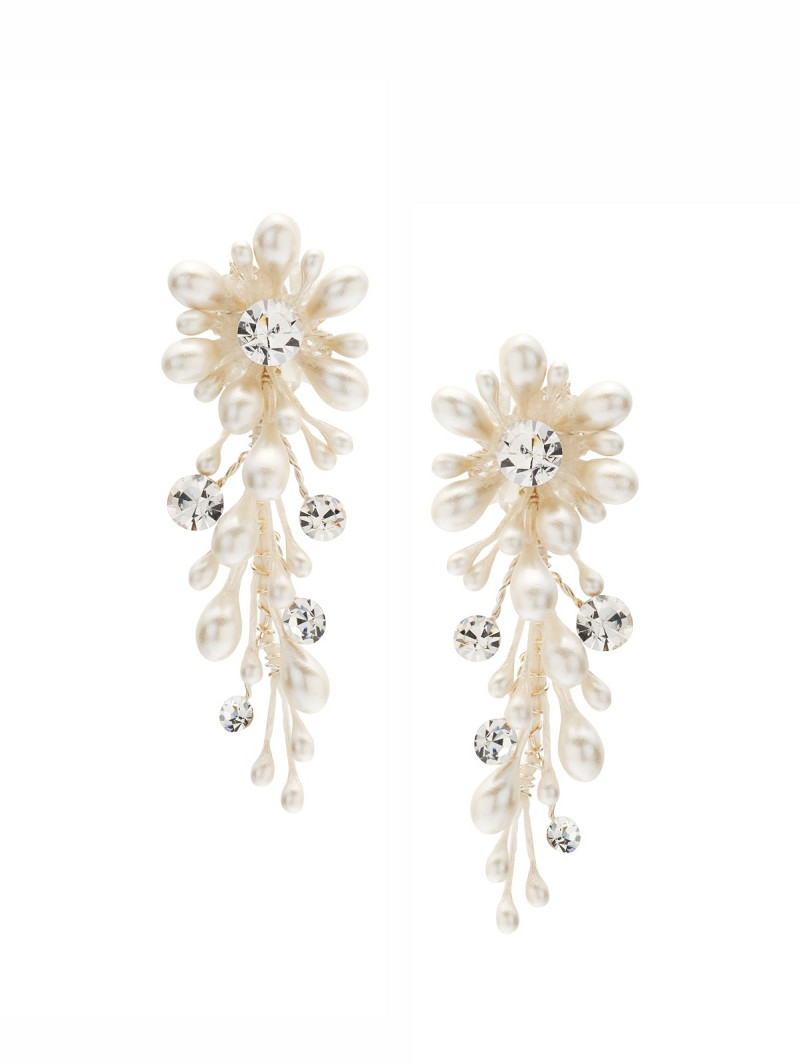 - Versiering van parelmoerkleurige druppels en strassteentjes.