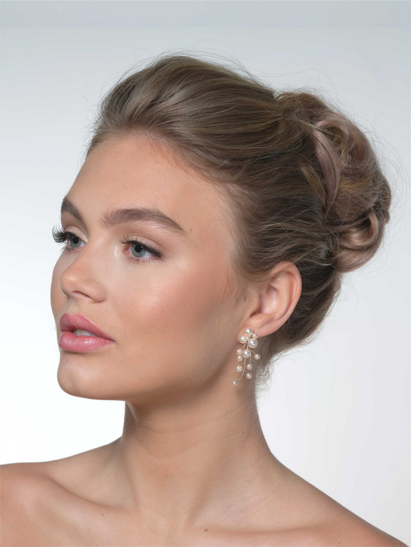 Oorbellen in de vorm van een takje met rosékleurige parels