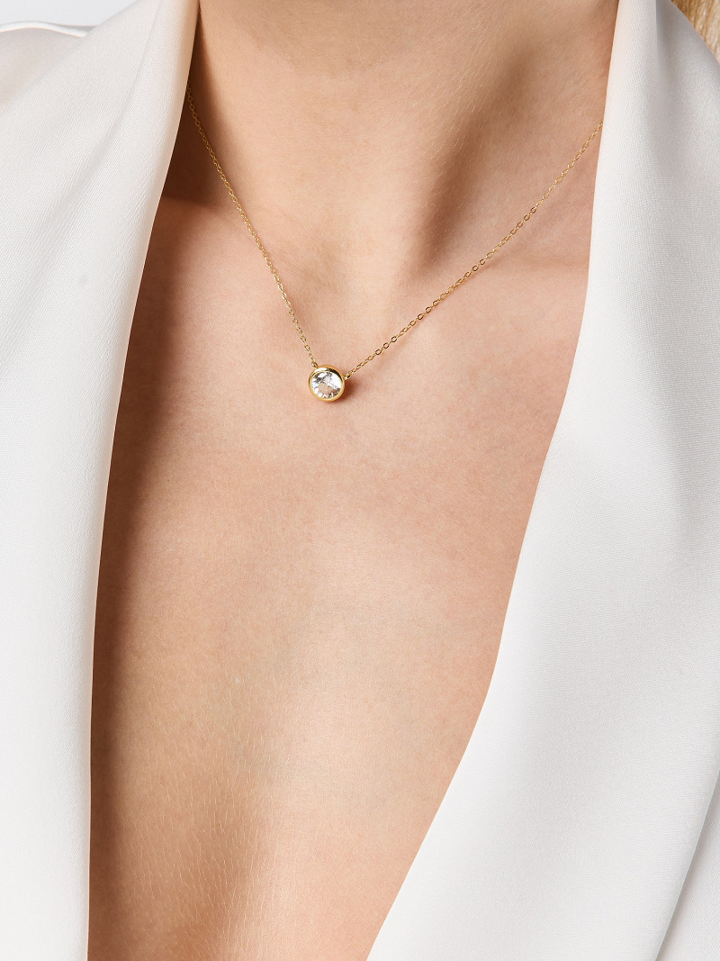 Juwelenset bestaande uit een fijn kettinkje en oorbelletjes met een strasssteen | Verkrijgbaar in zilver en goud | Aylin