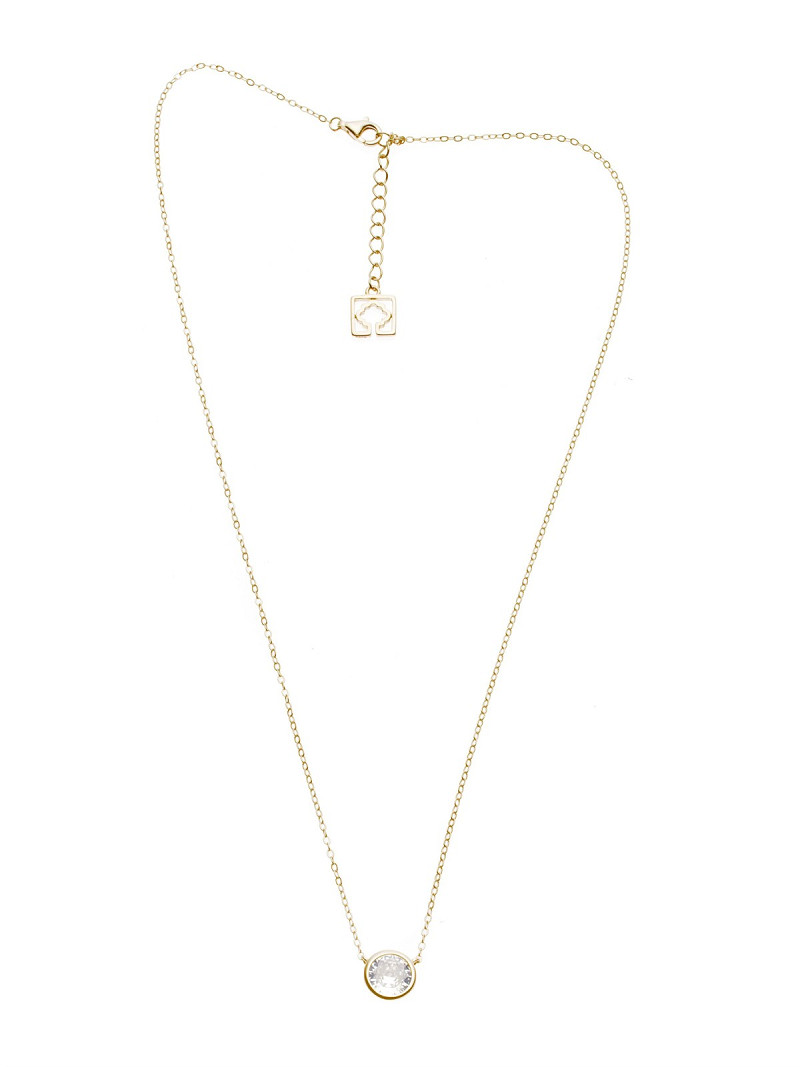 - Zowel het kettinkje als de oorbelletjes hebben een hanger met een strasssteen.