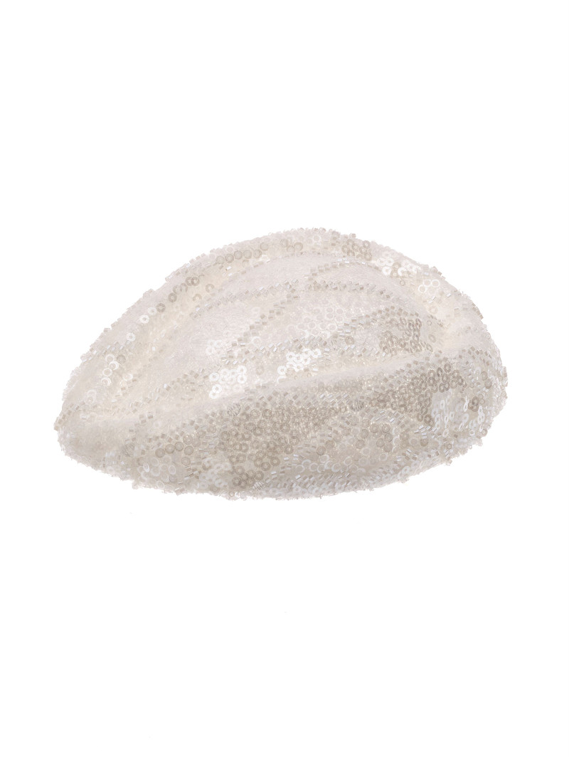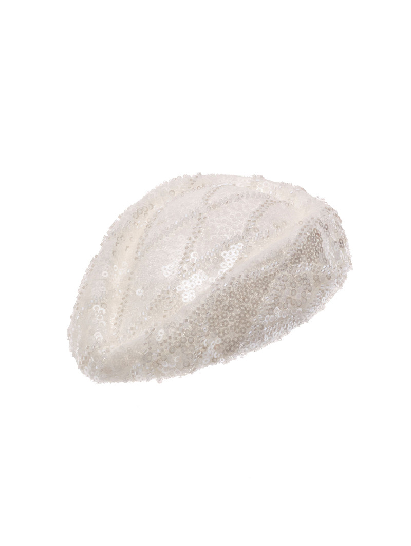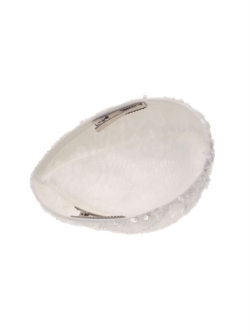 - Fascinator versierd met kraaltjes en pailletjes in een ruitvormig patroon.