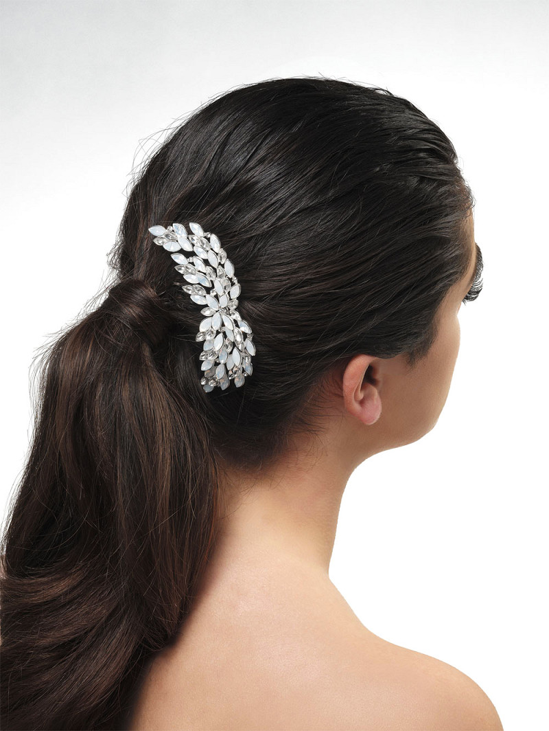 - Product: BB-465 – haarsieraad met blaadjes van strasssteentjes en maansteentjes op kam