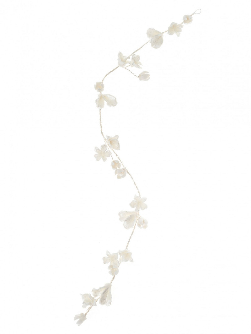 - zilverkleurig haarsieraad op een zilverkleurige draad met ivoorkleurige porseleinen bloemetjes