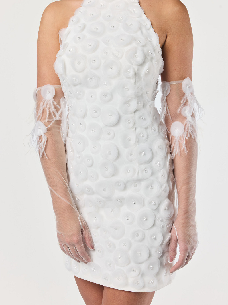 - Lange ivoorkleurige handschoenen van stretch tule uit de Poppy-lijn van de GEM Collection.
