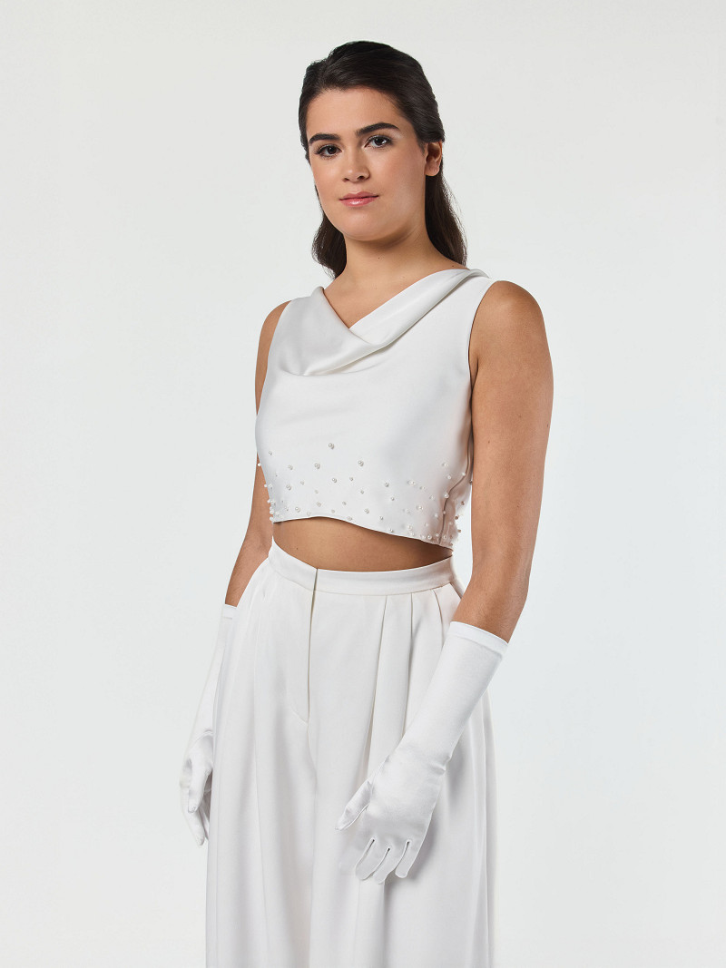 • Gemaakt van ivoorkleurige satijn.