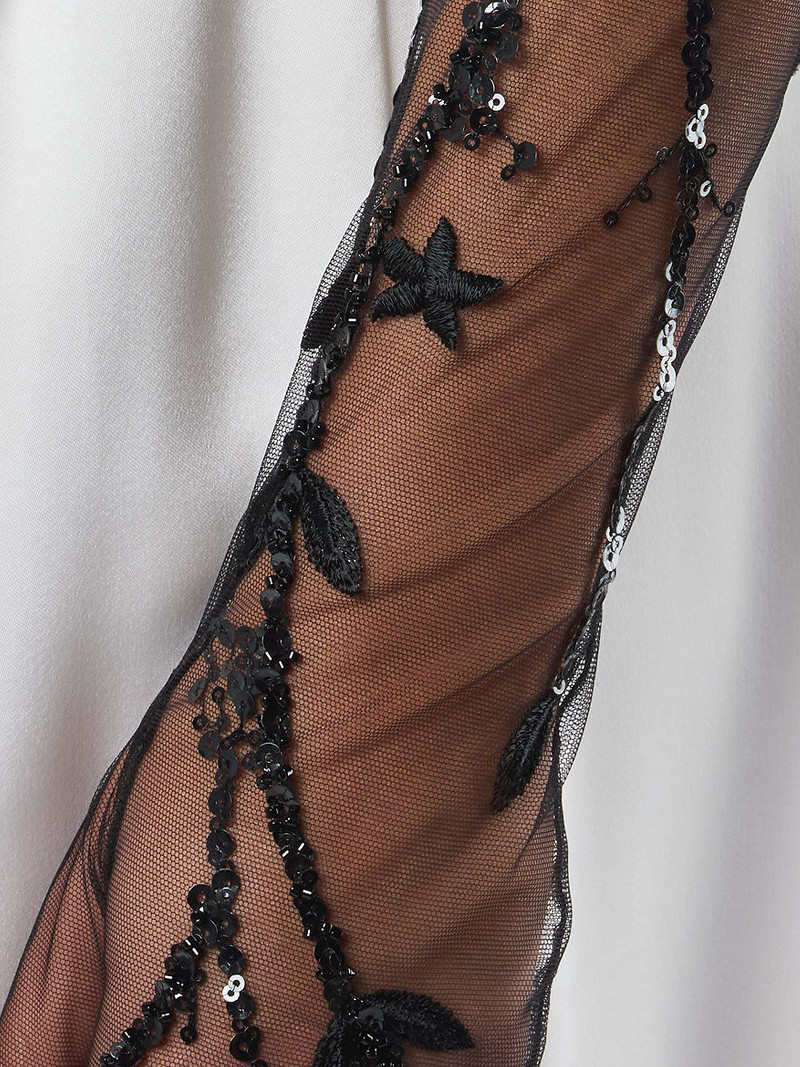 - Lange handschoenen van zwarte stretch tule uit de Poirier Collection.