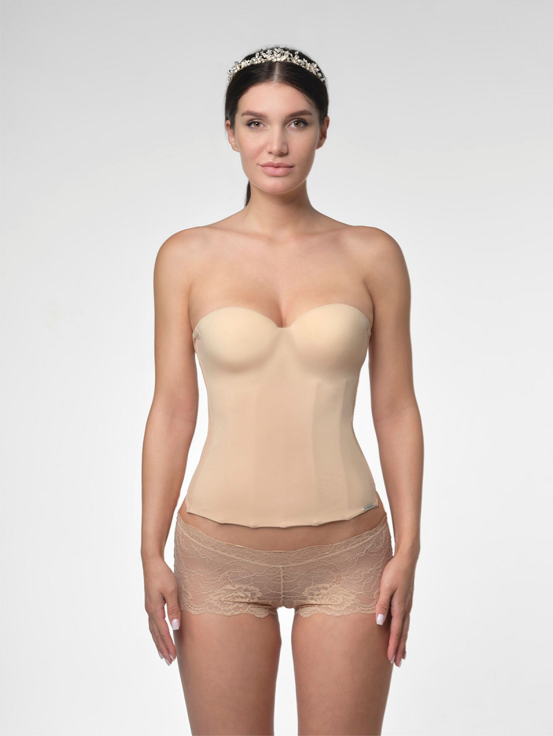 Strapless en naadloos full figure torselet met shaping van het figuur tot aan de heupen