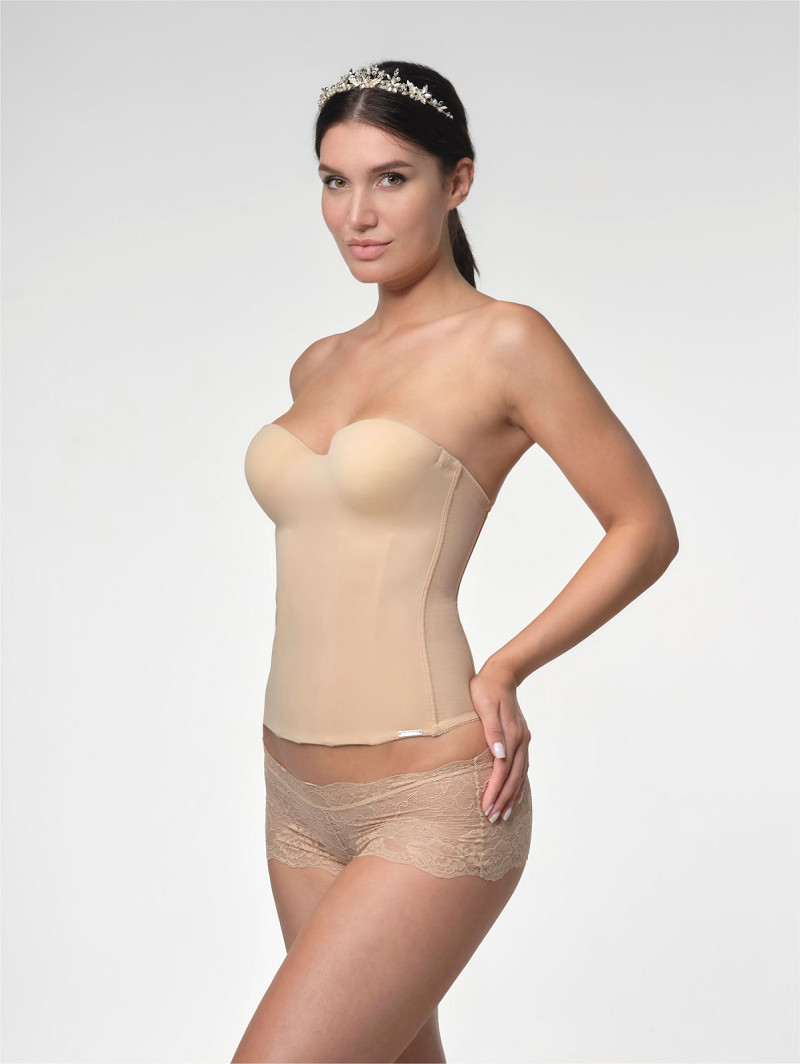 Strapless en naadloos full figure torselet met shaping van het figuur tot aan de heupen