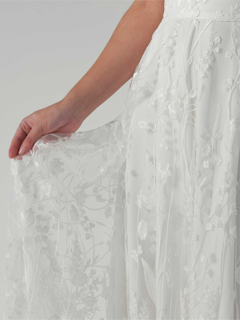 Overrok gemaakt van ivoorkleurige soft tule, versierd met ivoorkleurige geborduurde bloemen | GEM Collection | Geena-lijn