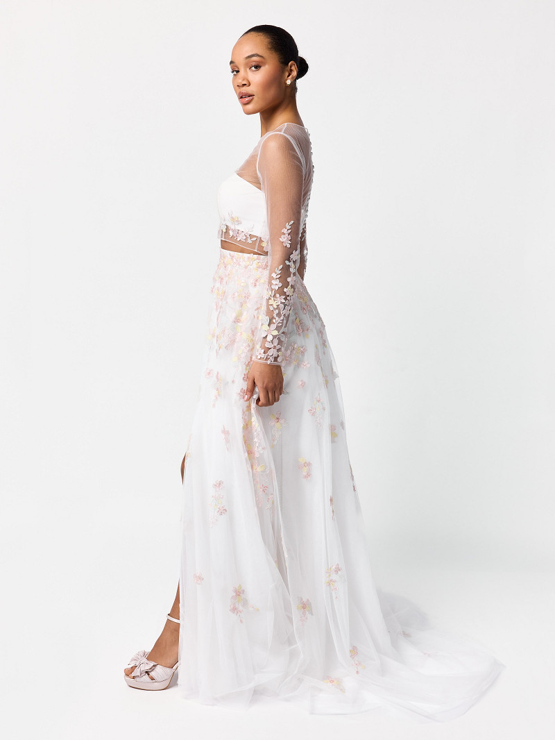 SK-75346 - Stylish bruidsrok met pastelkleurige bloemapplicatie