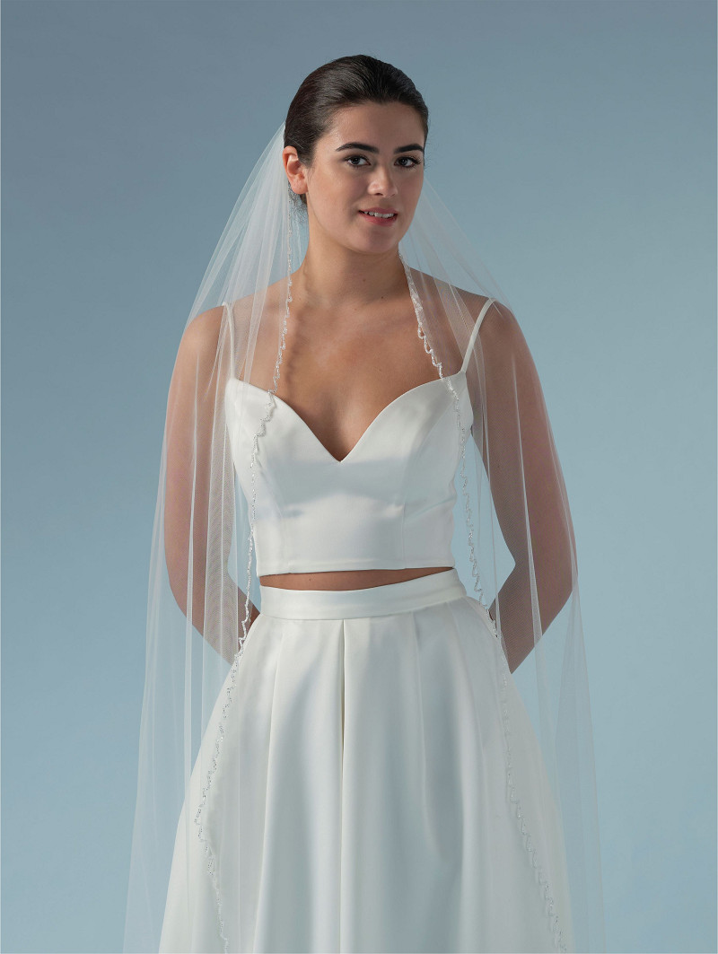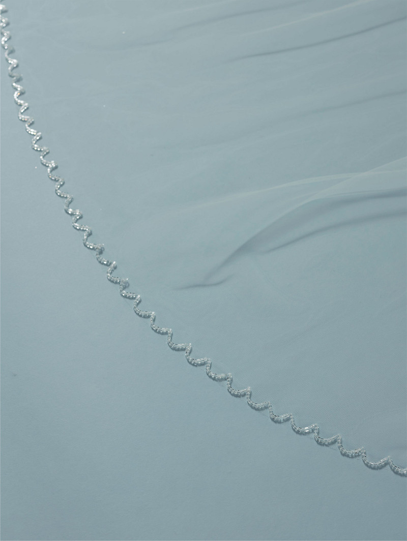 Sluier gemaakt van enkellaagse soft-tule met glaskraaltjes op de rand | lengte: 280 cm | verkrijgbaar in meerdere lengtes