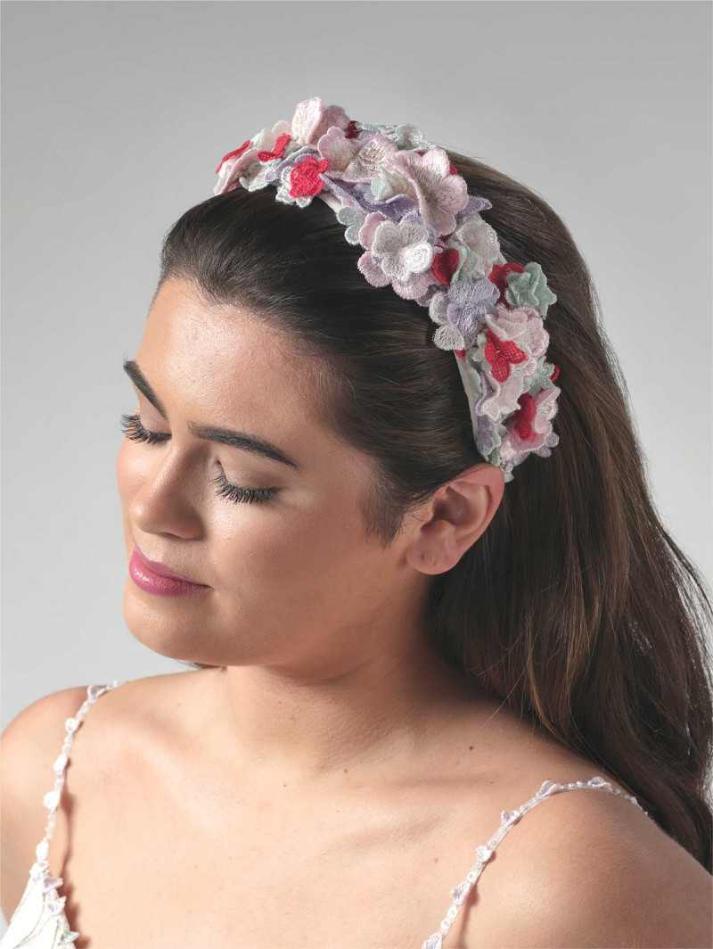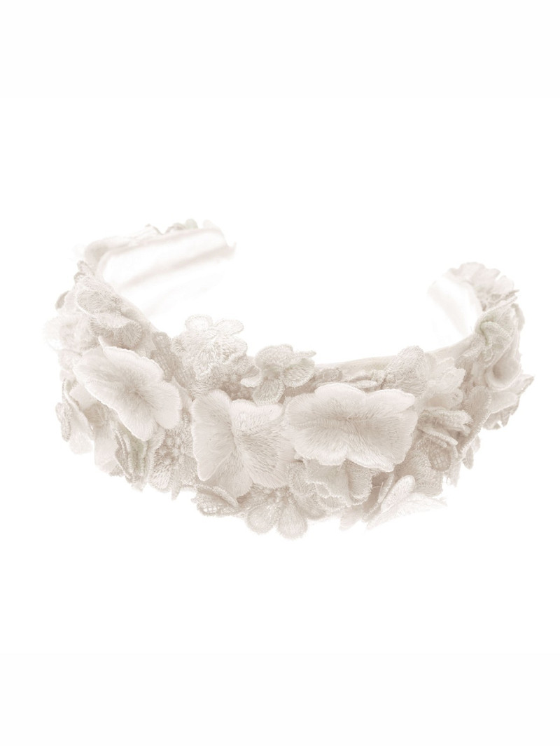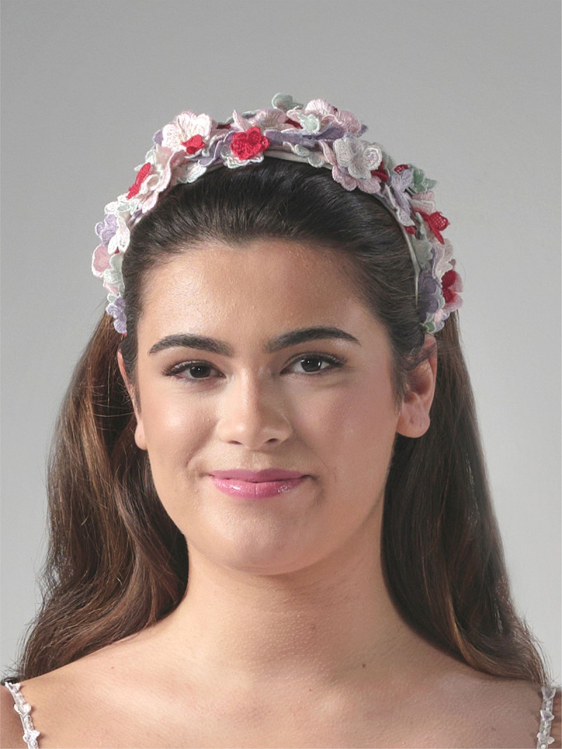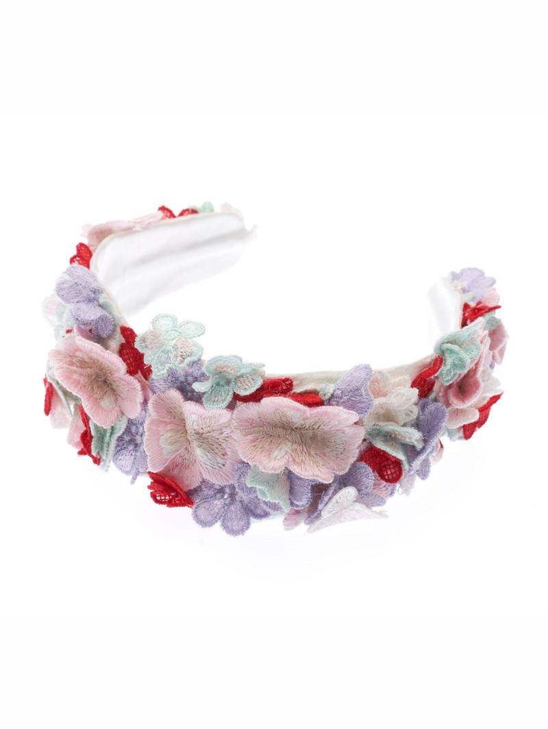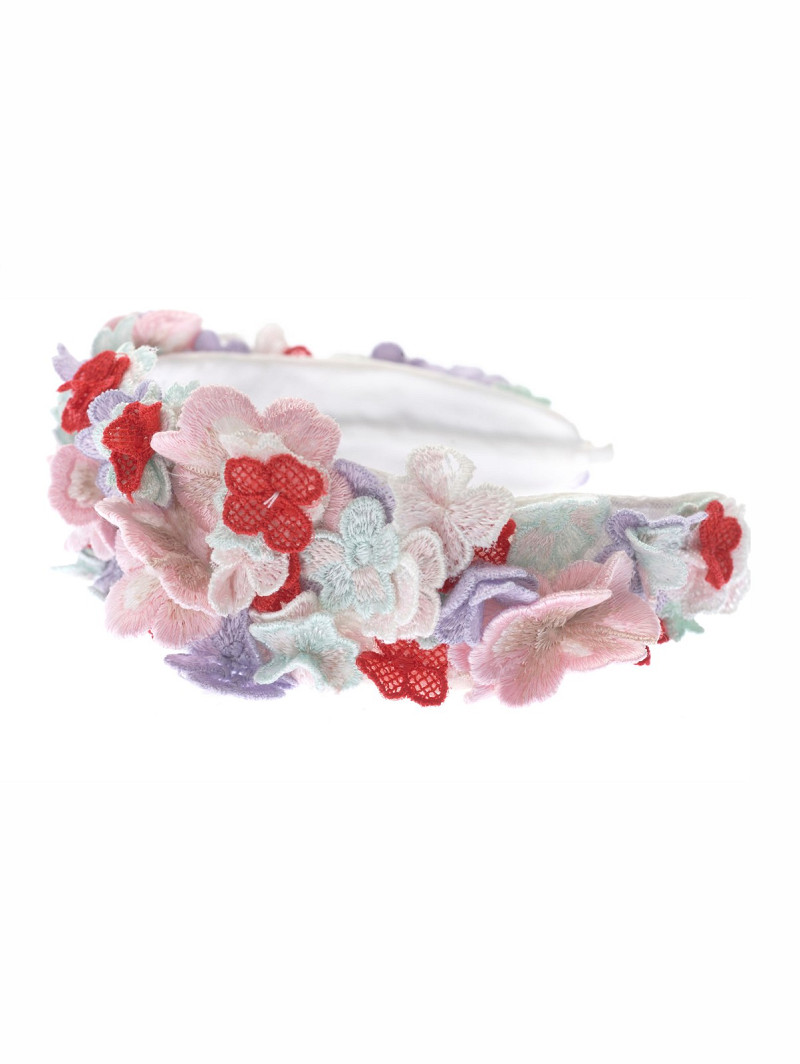 Diadeem gemaakt van stof met een versiering met kleurrijke geborduurde 3D-bloemen | GEM Collection | Geena-lijn