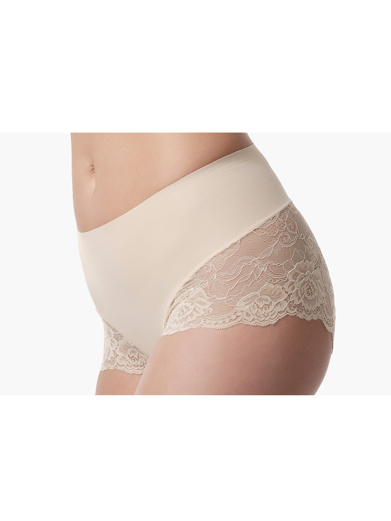 - Microfibre short met corrigerende stof en Pure Love kant die de buik corrigeert