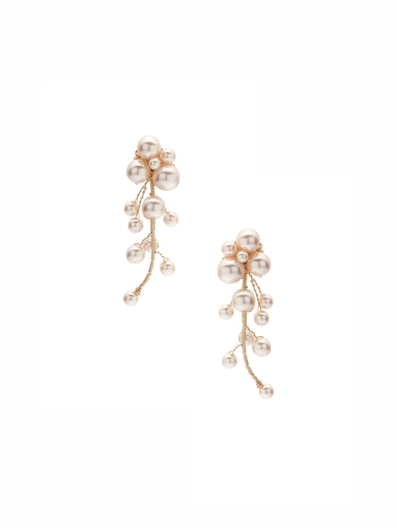 Oorbellen in de vorm van een takje met rosékleurige parels