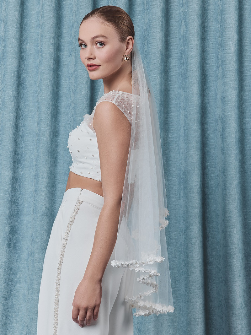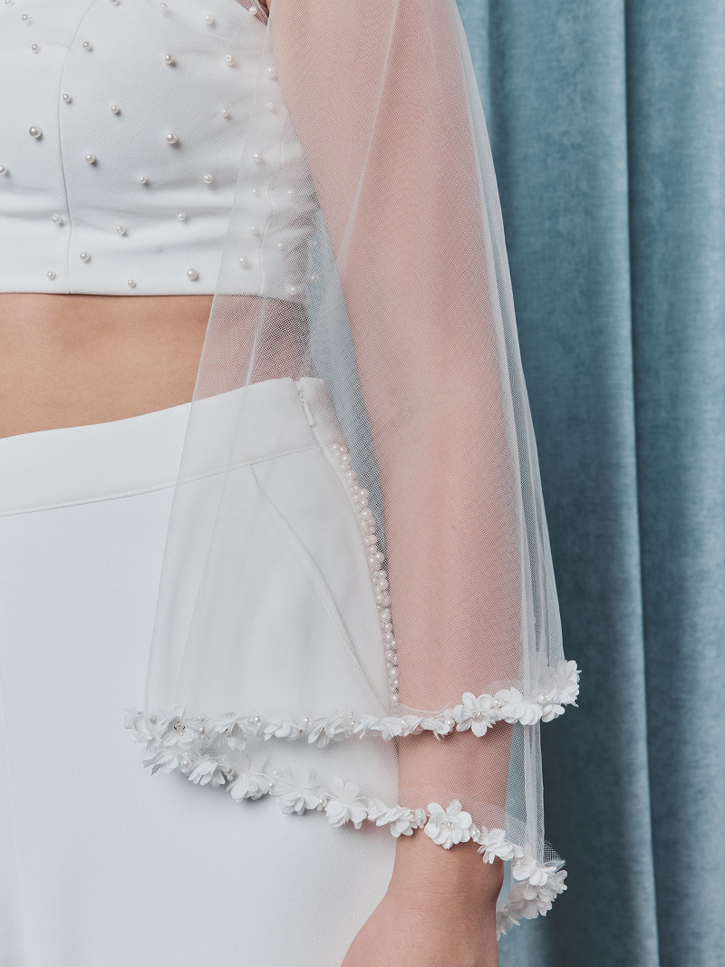 S75504-150/R/SF - Ronde sluier van soft-tule versierd met 3D bloemetjes