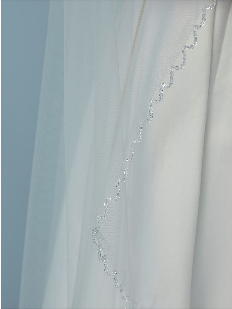 Sluier gemaakt van enkellaagse soft-tule met glaskraaltjes op de rand | lengte: 210 cm | verkrijgbaar in meerdere lengtes