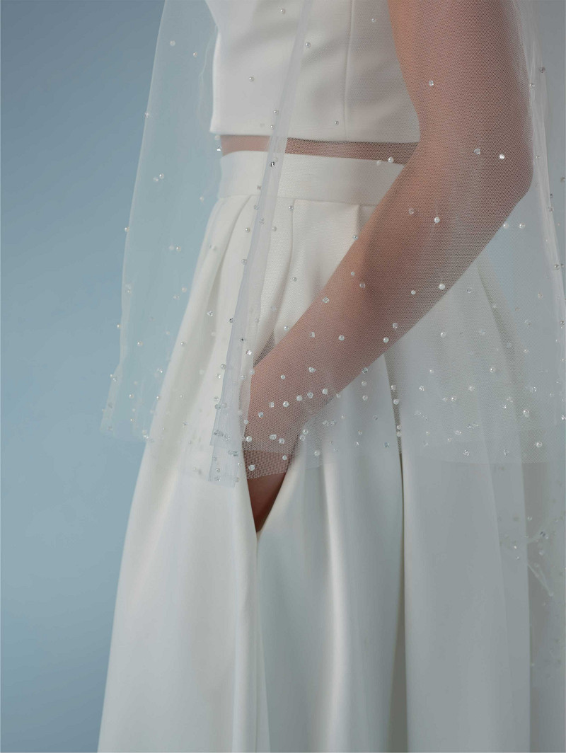 Sluier gemaakt van medium-tule versierd met parels van verschillende grootte| rond model | lengte: 210 cm
