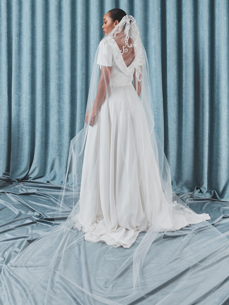 - Versierd met een patroon van kraaltjes dat loopt vanaf de sluierkam.
