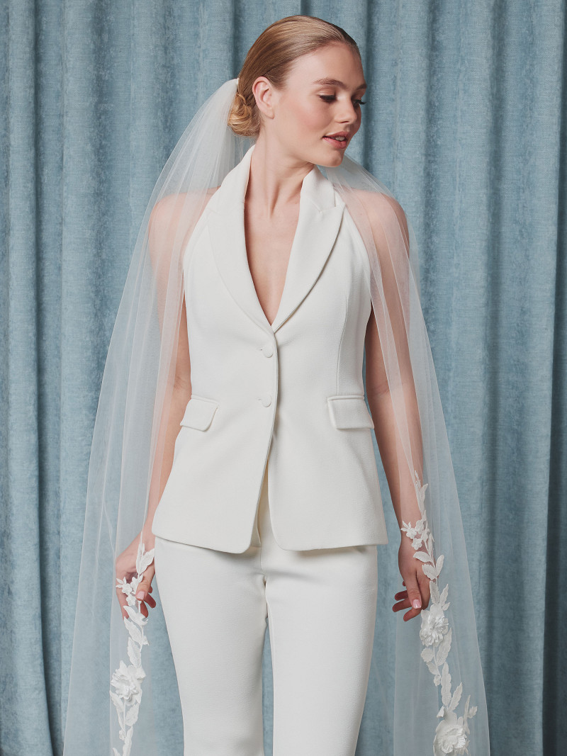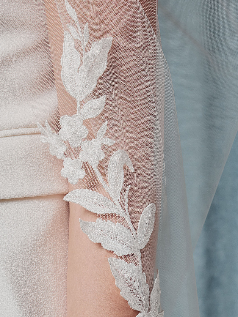 S75509-300/1/MD - Sluier van enkellaagse medium-tule versierd met 3D bloemetjes