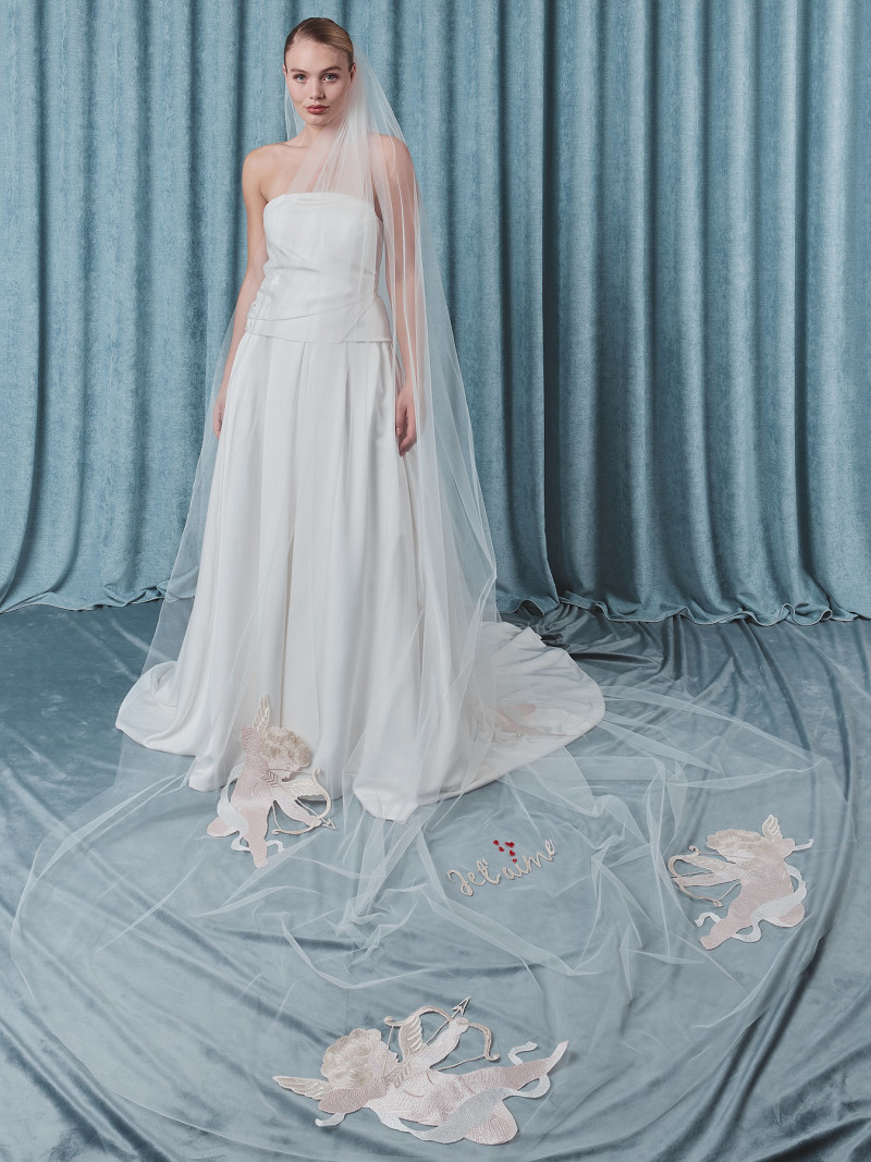 S75520-300/1/MD - Trendy sluier van medium-tule versierd met Cupido’s