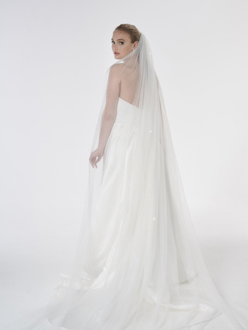 - Product: S47-300/1/Soft – enkellaagse bruidssluier gemaakt van soft-glittertule