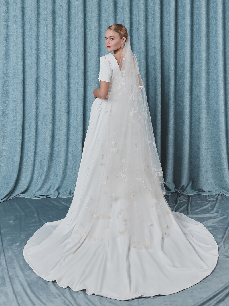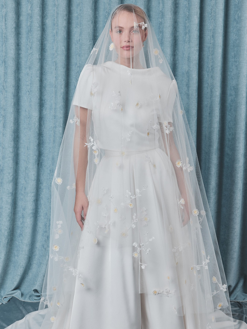 S75518-300/R/MD - Trendy ronde sluier van medium-tule met geborduurde bloemetjes over de hele sluier