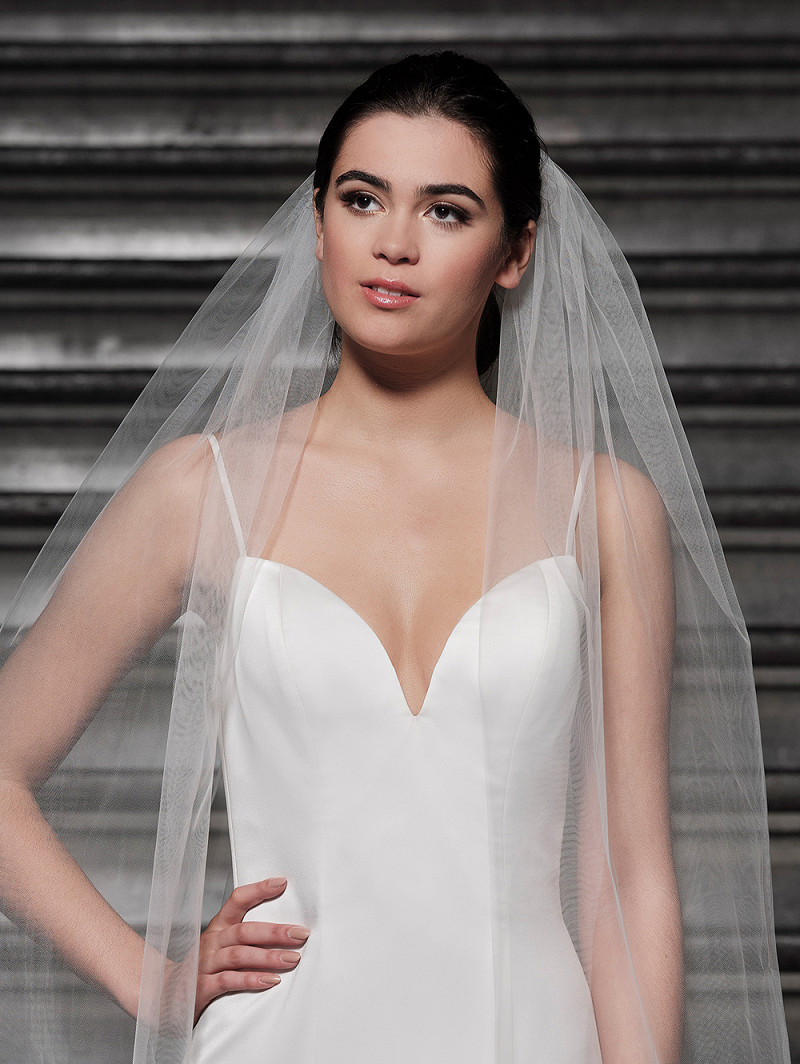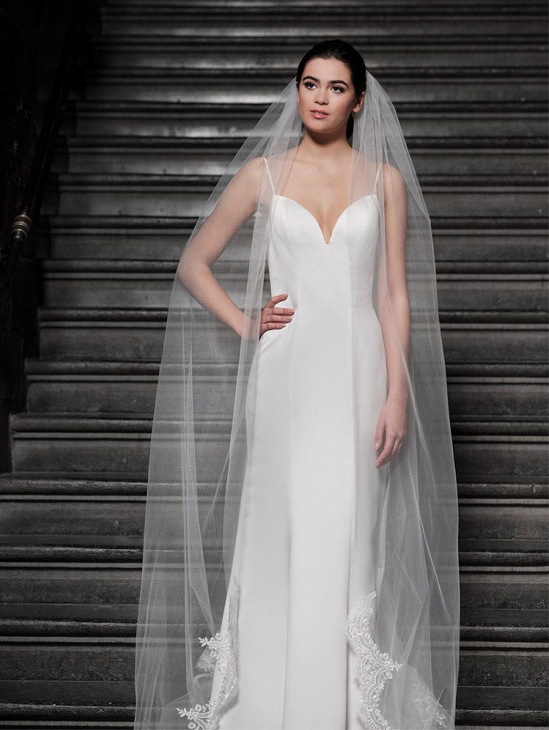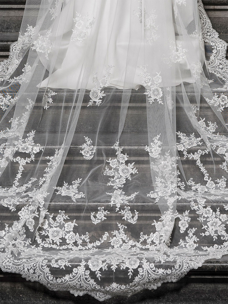 - Wanneer je de ultieme wedding-look wil dragen tijdens je huwelijk, kies dan voor sluier S371-350/1/Med uit de Romantic Collection van Poirier. Deze ivoorkleurige sluier is 350 cm lang en is gemaakt van enkellaagse medium-tule; daarnaast is deze sluier versierd met geborduurde bloemversiering met pailletjes. Kies voor deze sluier als je dé ultieme wedding-look wilt.