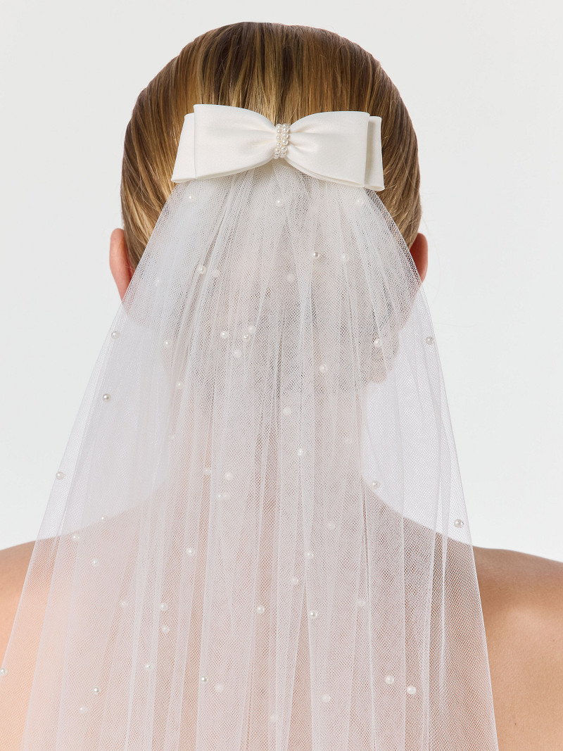 - Sluieraccessoire in de vorm van een strik uit de Poirier Collection.