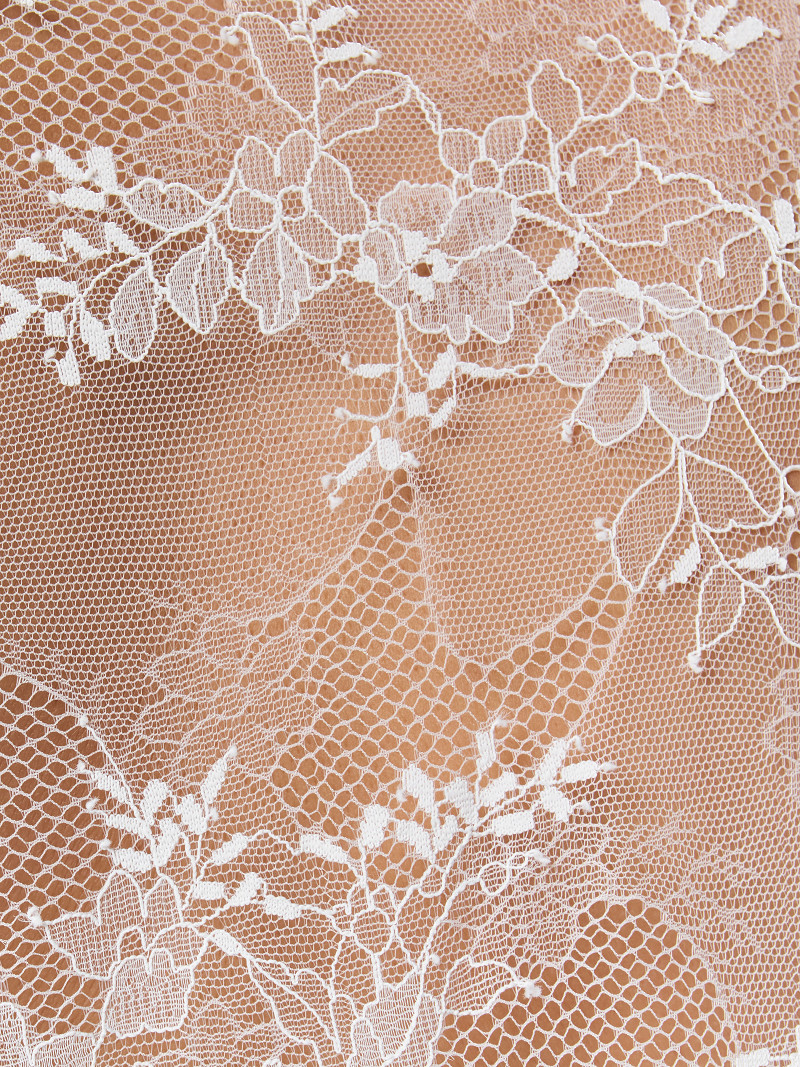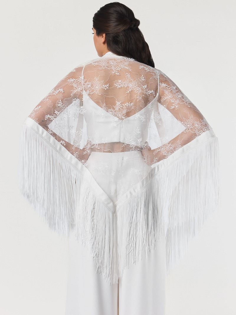 - Stola in driehoekvorm van ivoorkleurige Franse kant uit de Poirier Collection.
