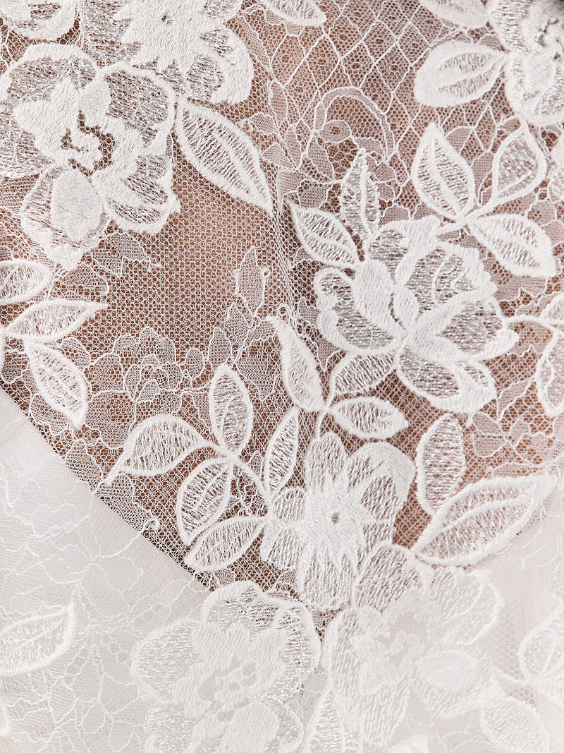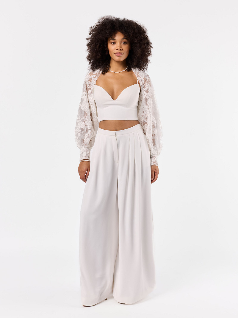 • Ivoorkleurige kanten stola met lange mouwen uit de Poirier Collection.