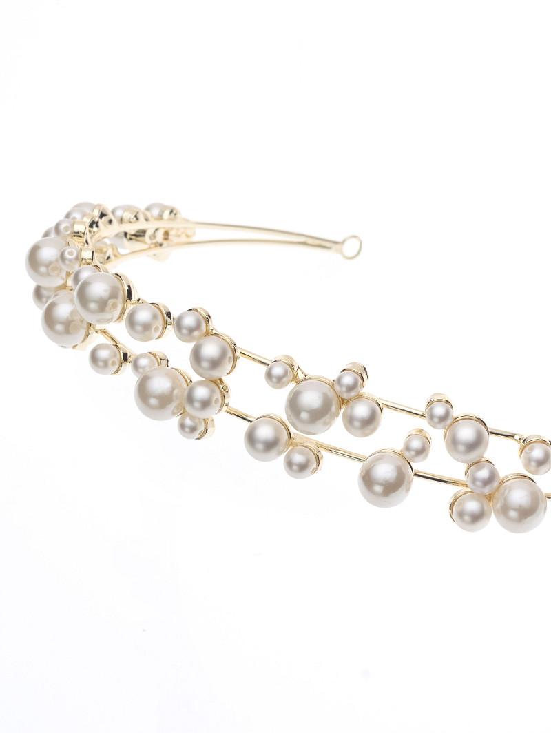 BB-75012 - Tiara, prachtig versierd met deluxe matte en glanzende parels in verschillende groottes