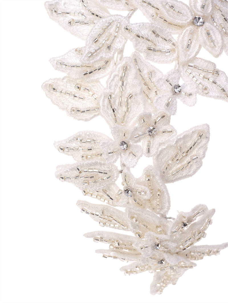 - Versierd met ivoorkleurige geborduurde blaadjes, kraaltjes en schitterende strasssteentjes.