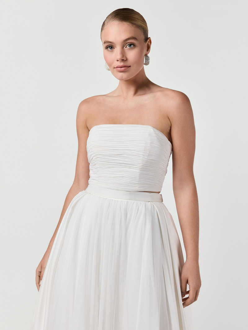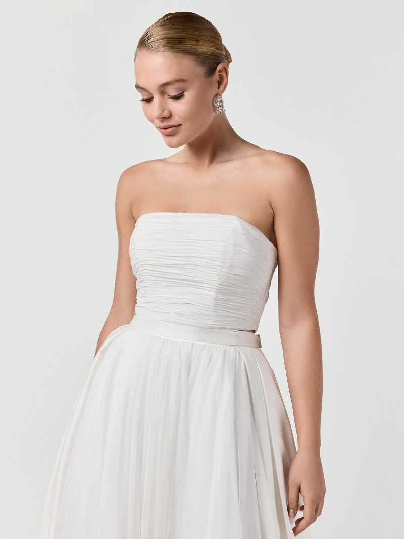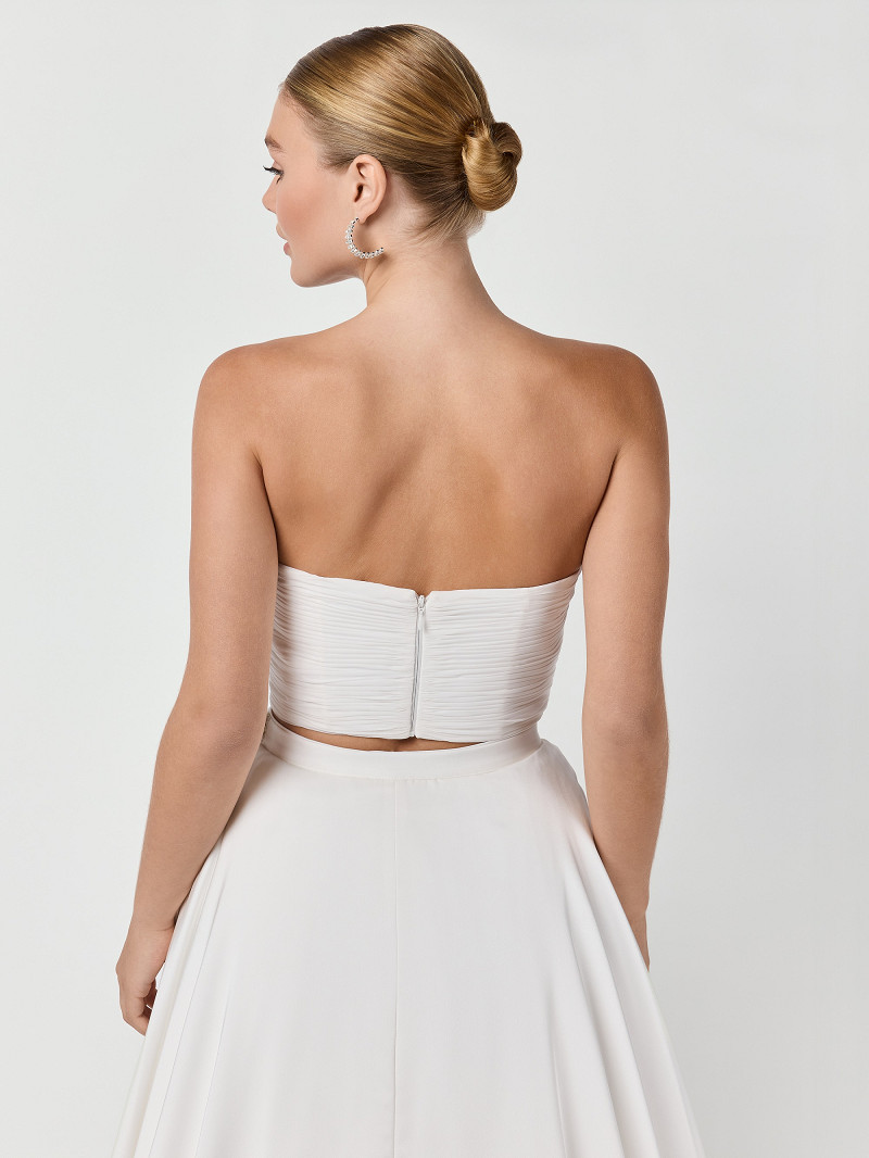 Bridal top gemaakt van ivoorkleurige crêpestof en chiffon | GEM Collection | Dana-lijn