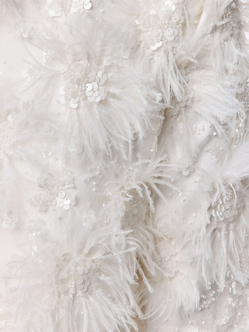 - Versierd met beads, pailletten en struisvogelveren.’