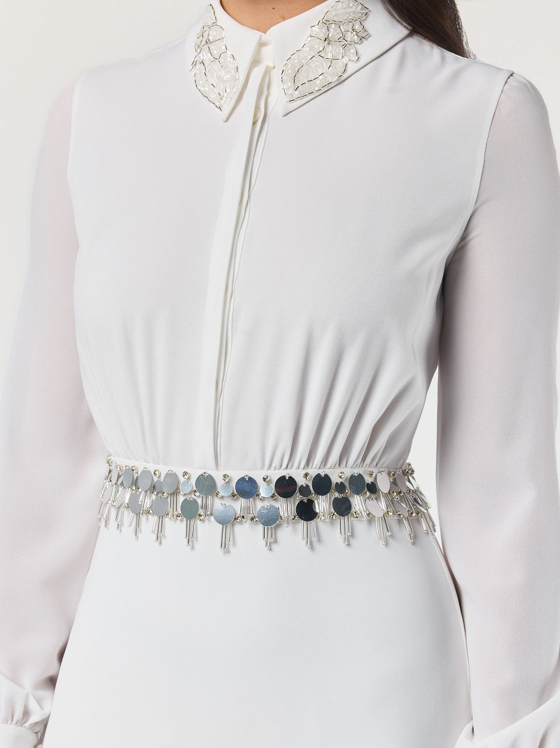 - Gemaakt van ivoorkleurige crêpe georgette.