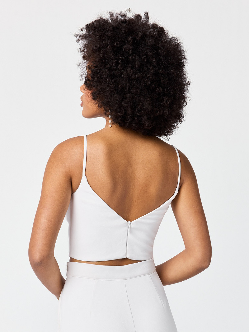 Bridal top gemaakt van ivoorkleurige crêpestof met blinde rits middenachter | GEM Collection | Dana-lijn
